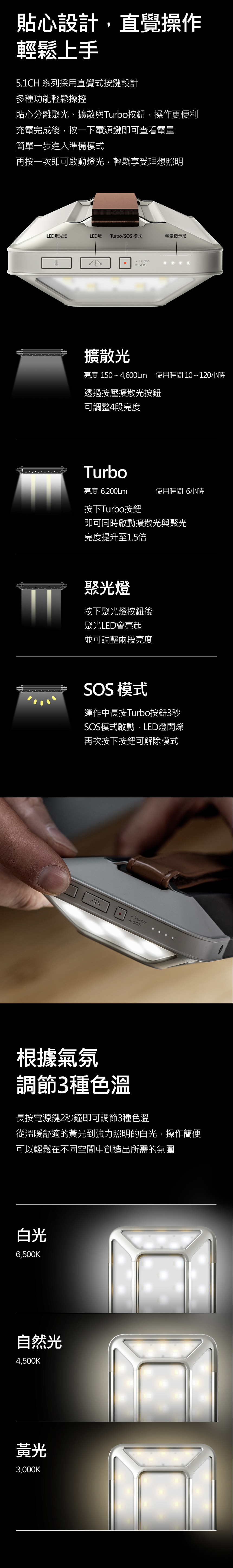 三段亮地調整,最大亮度6000流明