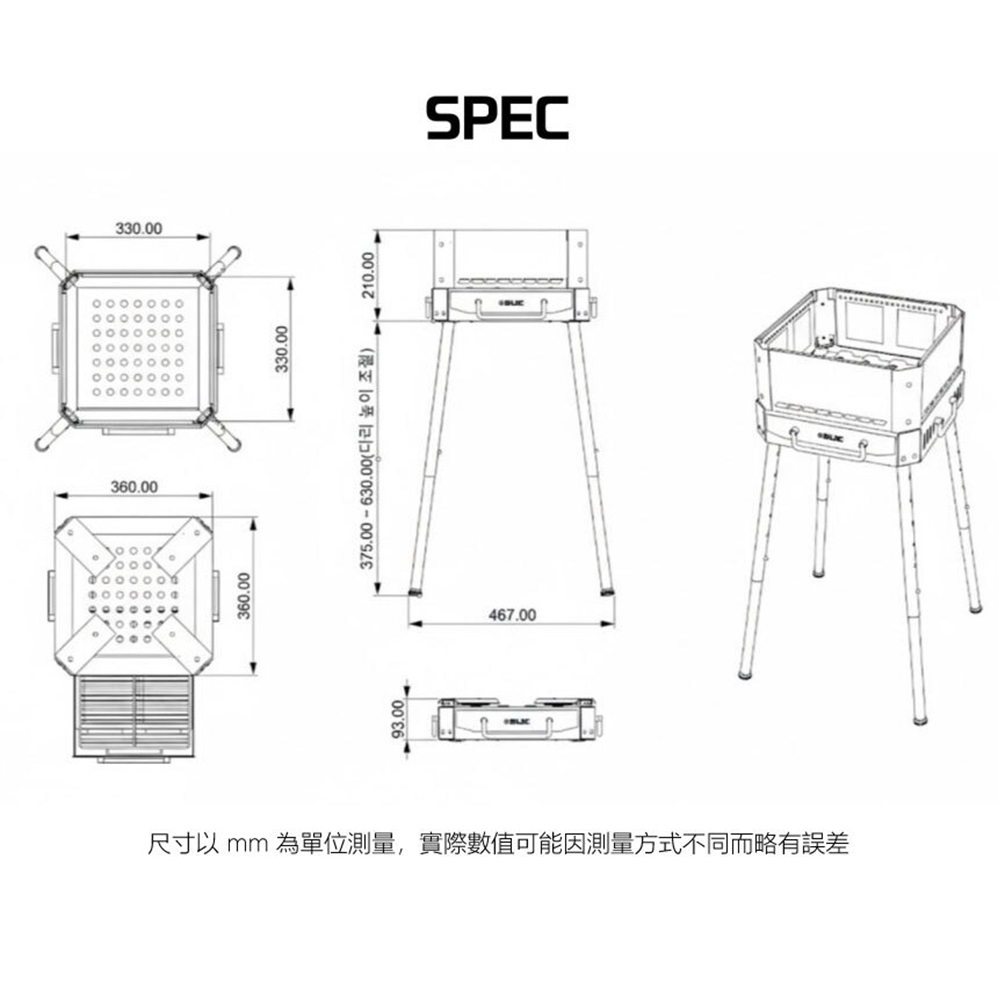 火爐尺寸|360 × 360 × 585–870